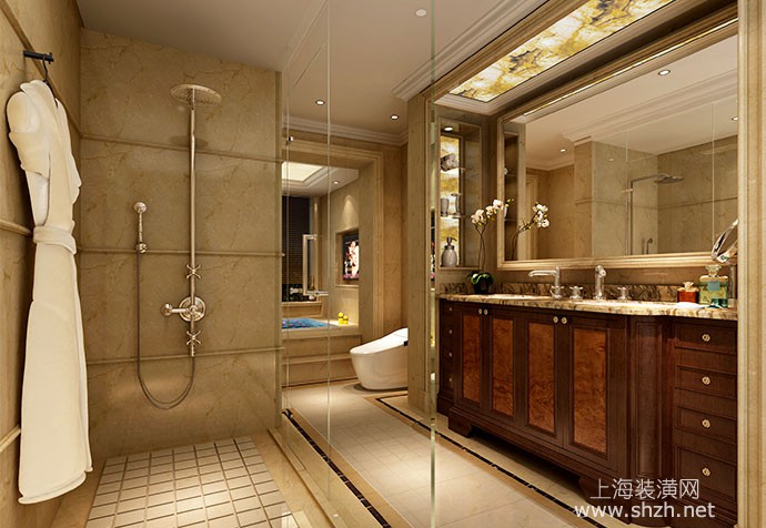 卫生间 - 康桥半岛300平别墅装修新中式风格设计,上海腾龙别墅设计作品
