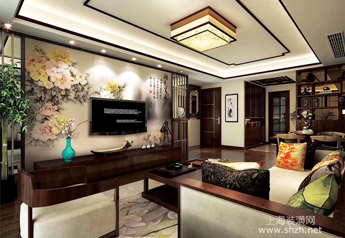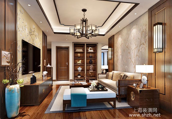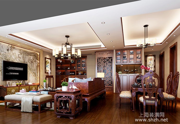 客厅 - 康桥半岛300平别墅装修新中式风格设计,上海腾龙别墅设计作品