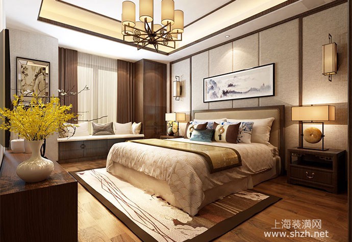 卧室 - 康桥半岛300平别墅装修新中式风格设计,上海腾龙别墅设计作品