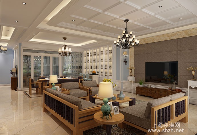 客厅 - 宝华源墅联排别墅项目装修简欧风格设计, 上海聚通装饰集团腾龙别墅设计