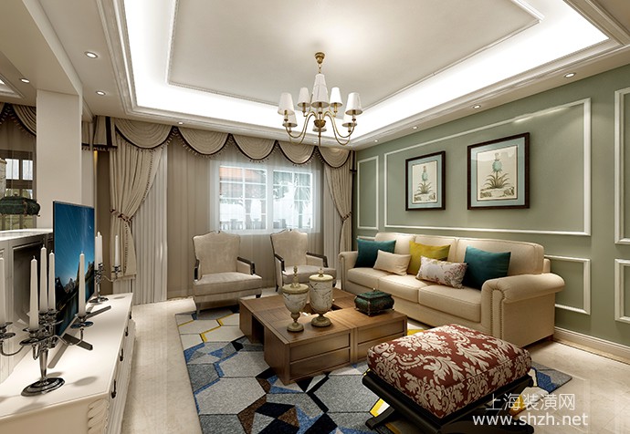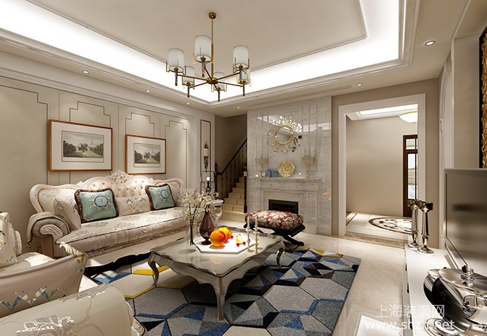 客厅 - 保利茉莉公馆别墅项目装修简欧风格设计,上海腾龙别墅设计作品