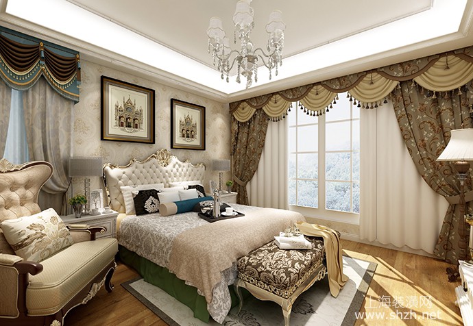卧室 - 保利茉莉公馆别墅项目装修简欧风格设计,上海腾龙别墅设计作品