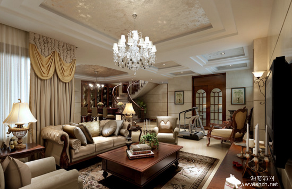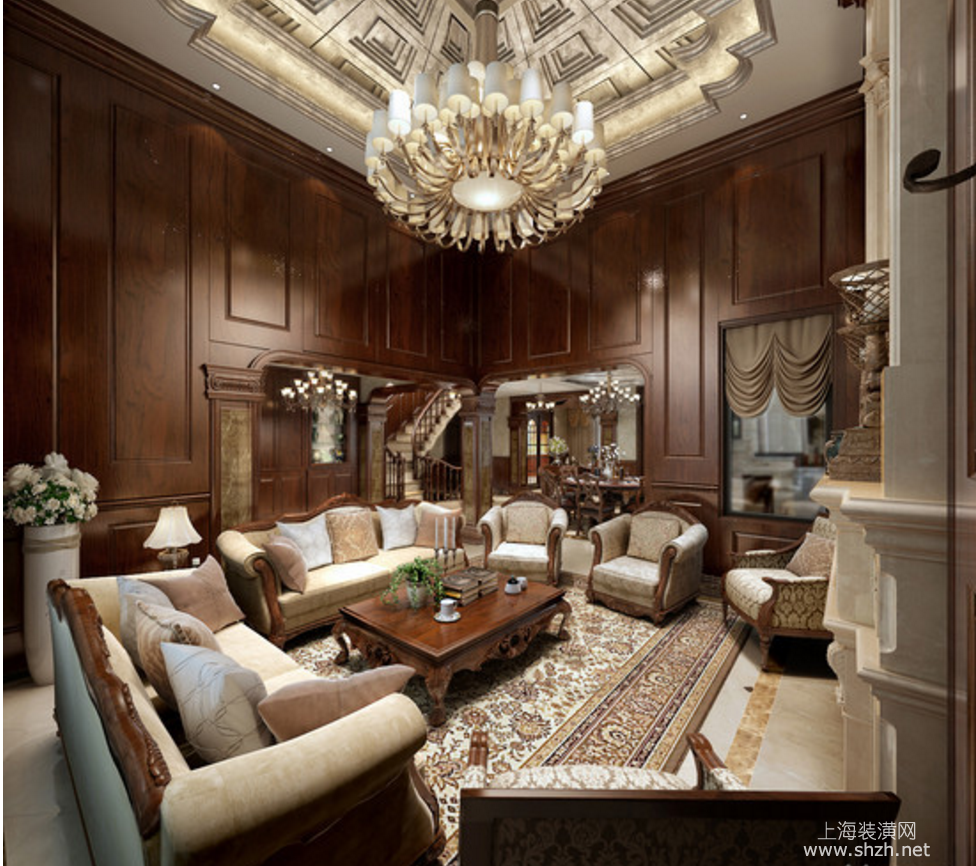 客厅 - 东郊紫园别墅项目装修美式风格设计,上海腾龙别墅设计作品,欢迎品鉴