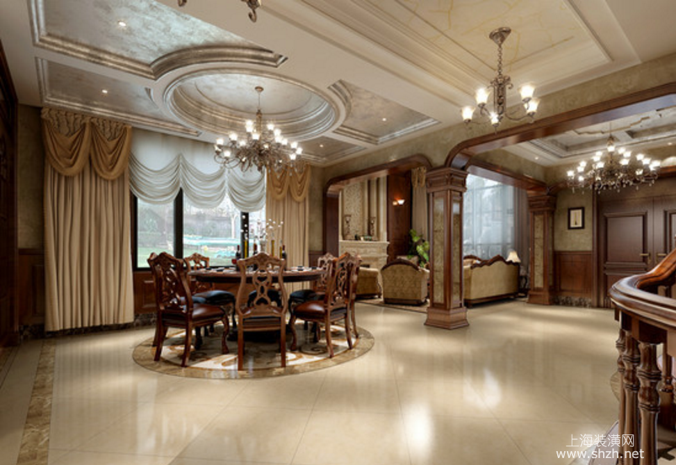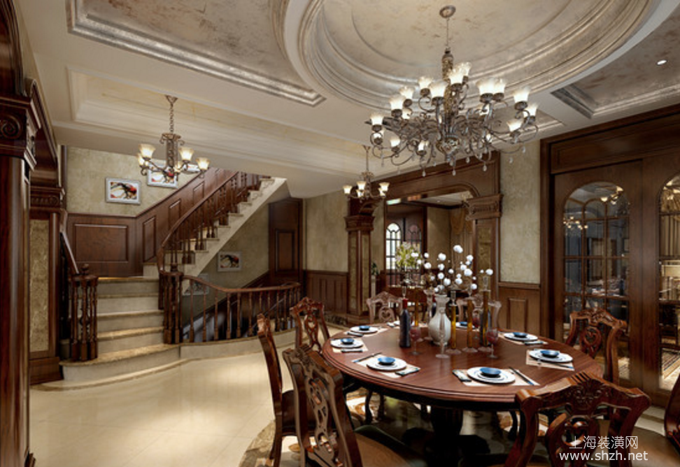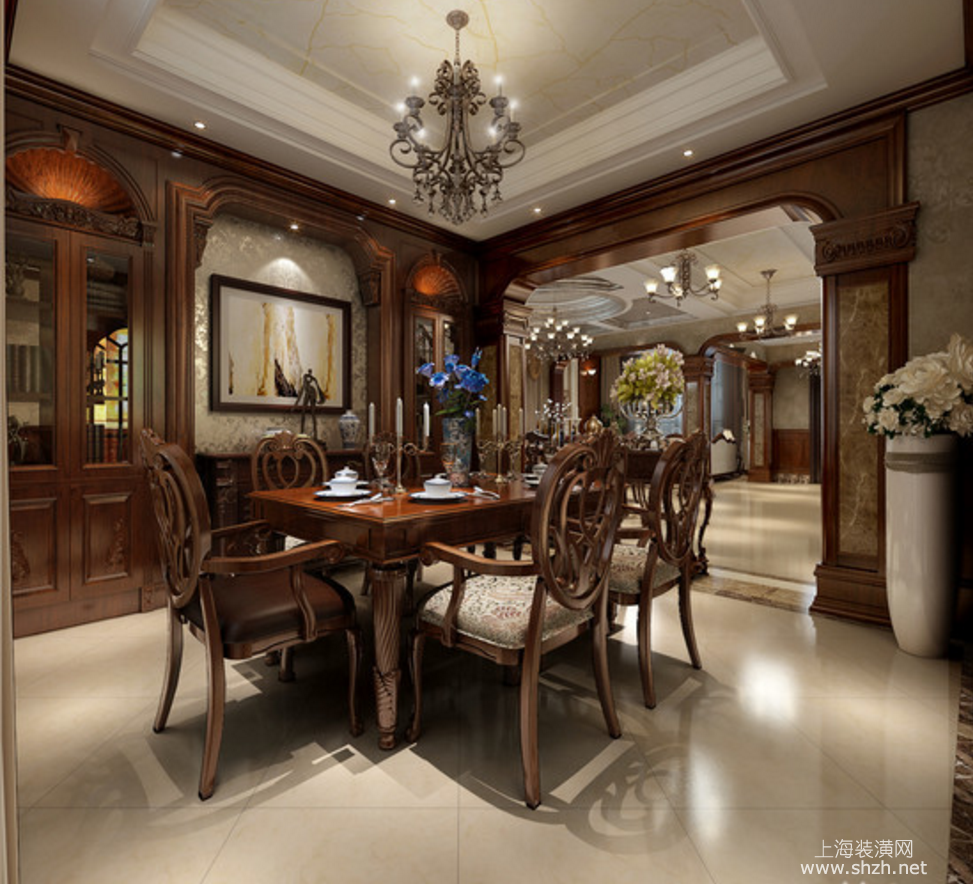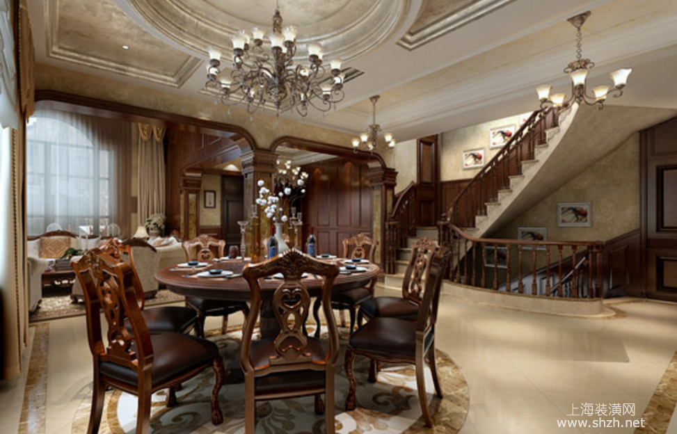 餐厅 - 东郊紫园别墅项目装修美式风格设计,上海腾龙别墅设计作品,欢迎品鉴