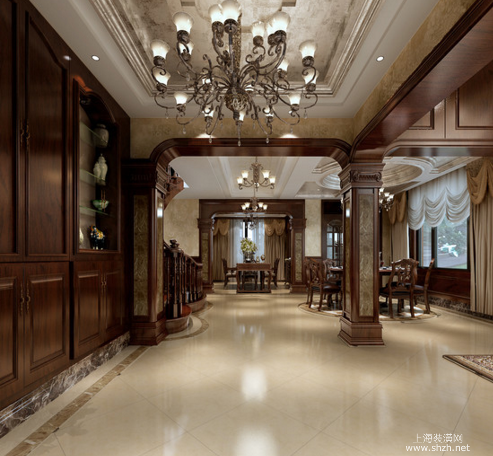 走廊 - 东郊紫园别墅项目装修美式风格设计,上海腾龙别墅设计作品,欢迎品鉴