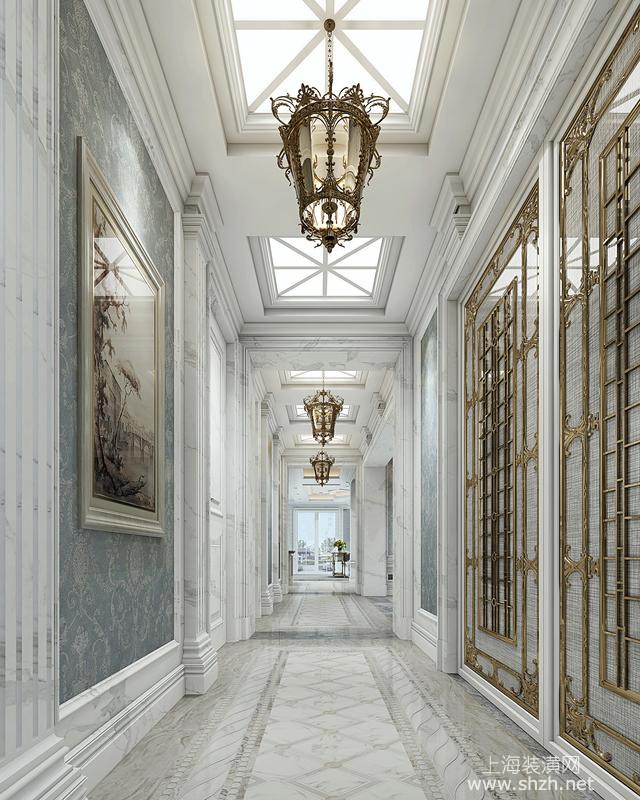 走廊 - 别墅装修法式风格设计,上海腾龙别墅设计