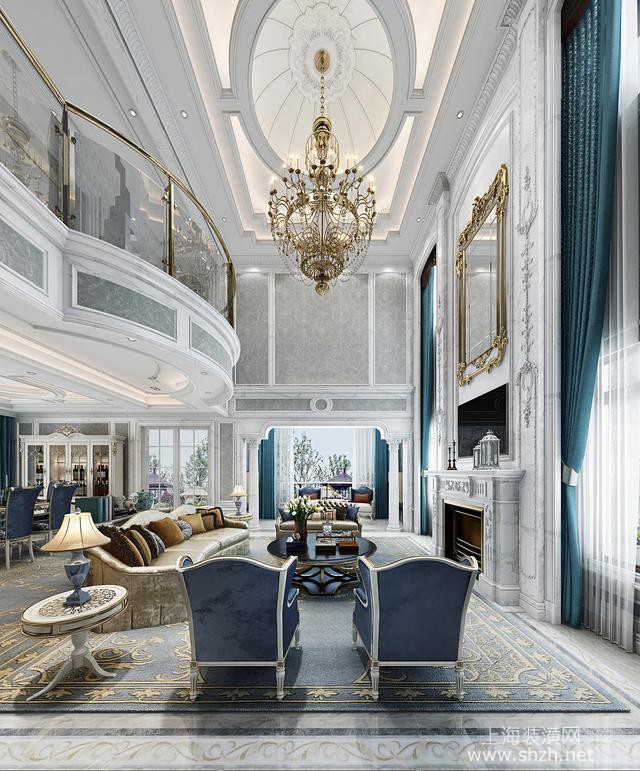 客厅 - 别墅装修法式风格设计,上海腾龙别墅设计