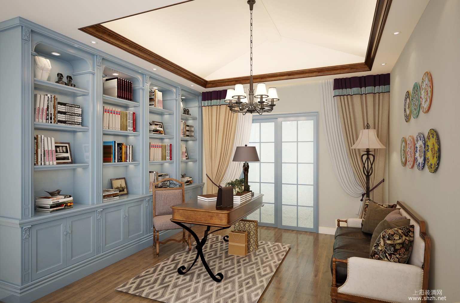 书房 - 保利蔚蓝林语别墅项目装修美式风格装修设计,上海腾龙别墅设计师黄彬作品,欢迎品鉴