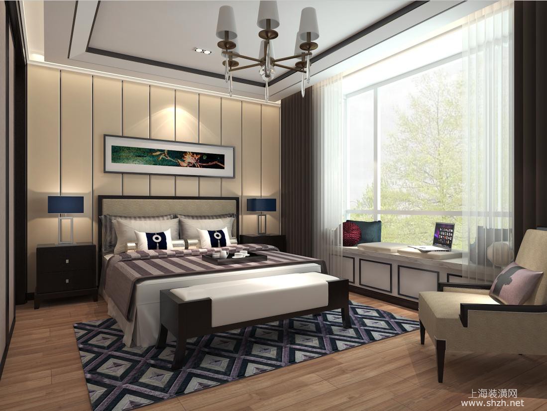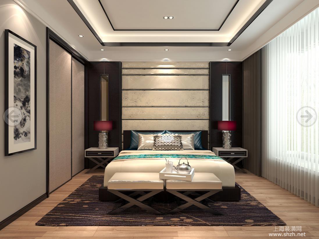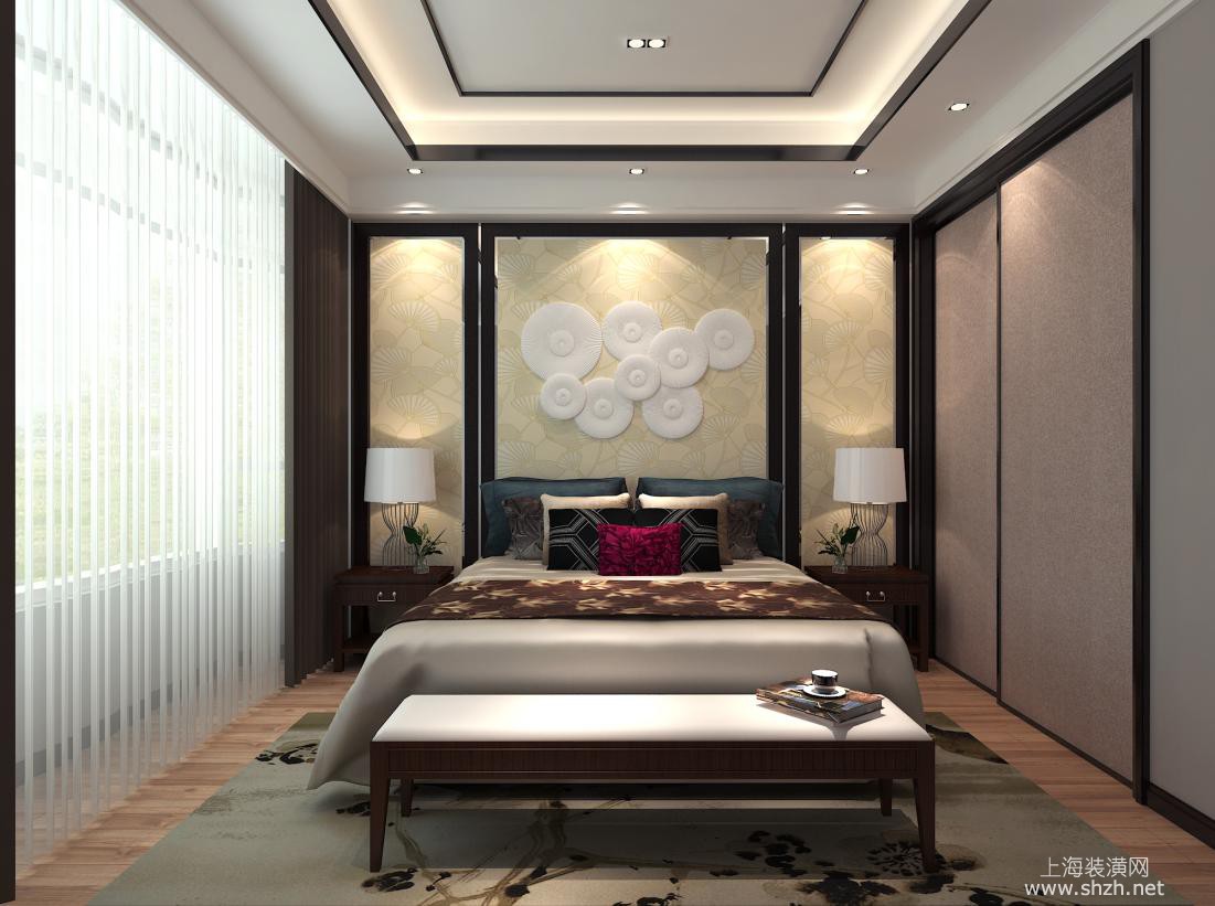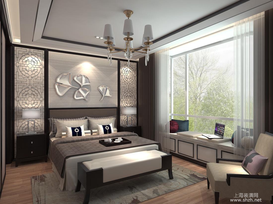 卧室 - 青浦绿中海名苑别墅项目装修新中式风格设计,上海腾龙别墅设计师李乃忠作品,欢迎品鉴