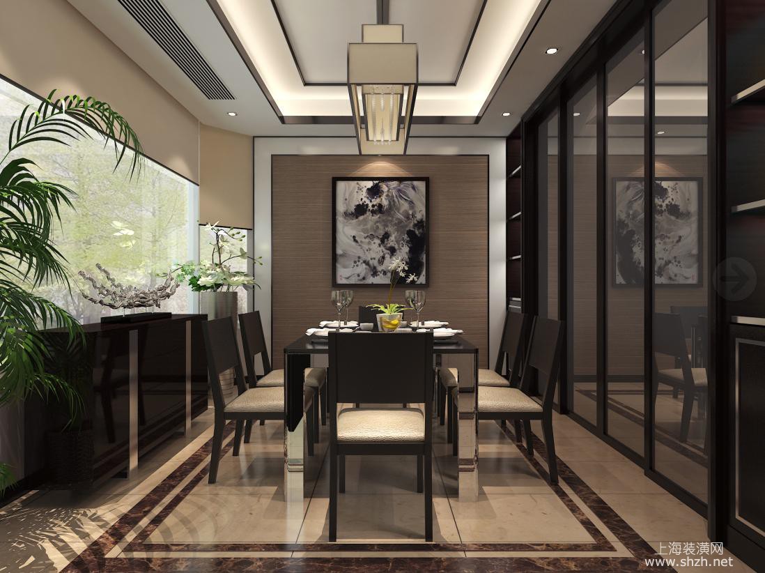 餐厅 - 青浦绿中海名苑别墅项目装修新中式风格设计,上海腾龙别墅设计师李乃忠作品,欢迎品鉴