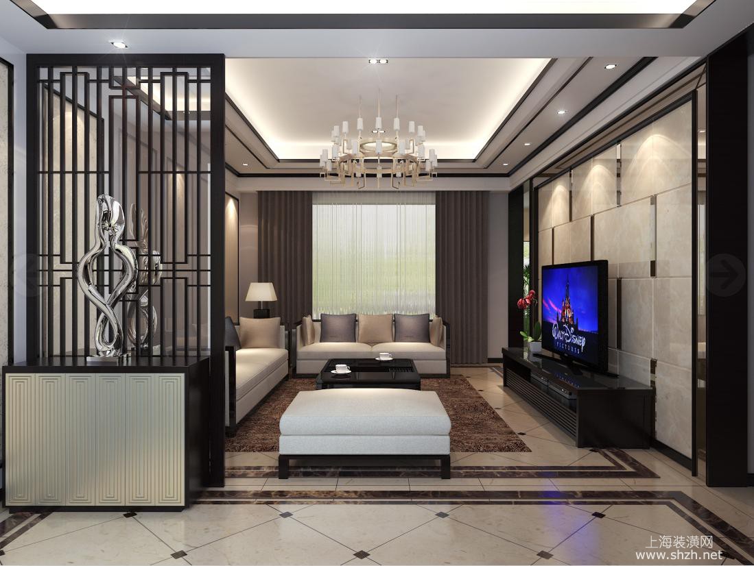 客厅 - 青浦绿中海名苑别墅项目装修新中式风格设计,上海腾龙别墅设计师李乃忠作品,欢迎品鉴