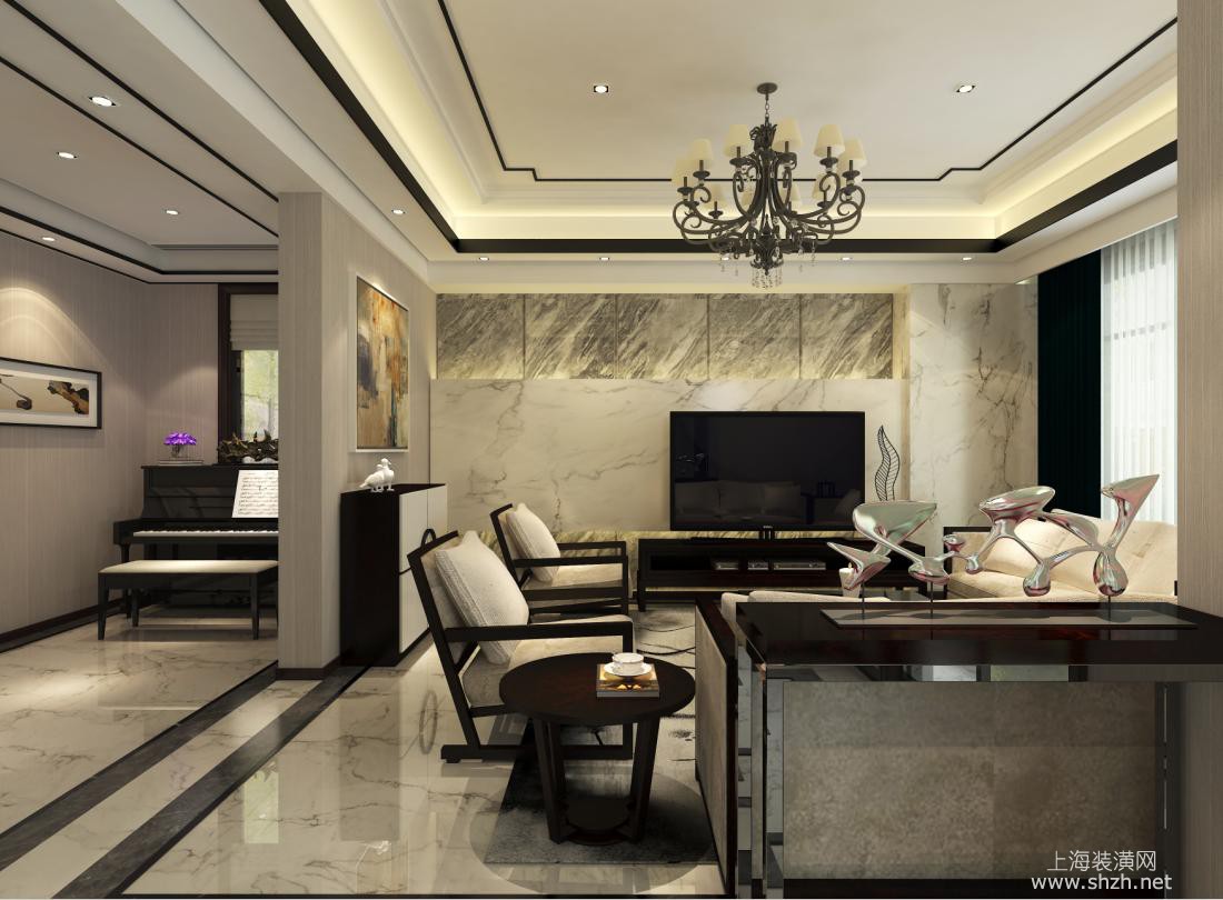 客厅 - 西郊名邸大平层项目装修现代风格设计,上海腾龙别墅设计师李乃忠作品,欢迎品鉴