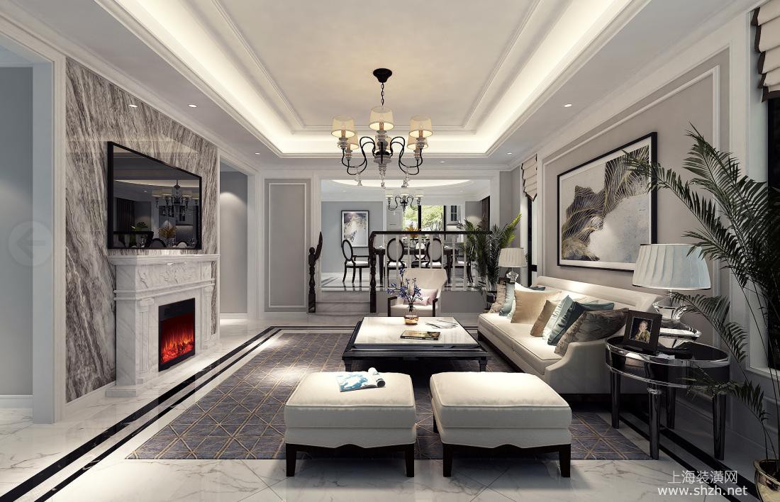 客厅 - 新虹桥君悦湾墅联排别墅项目装修欧美风格设计,上海腾龙别墅设计师李乃忠作品,欢迎品鉴