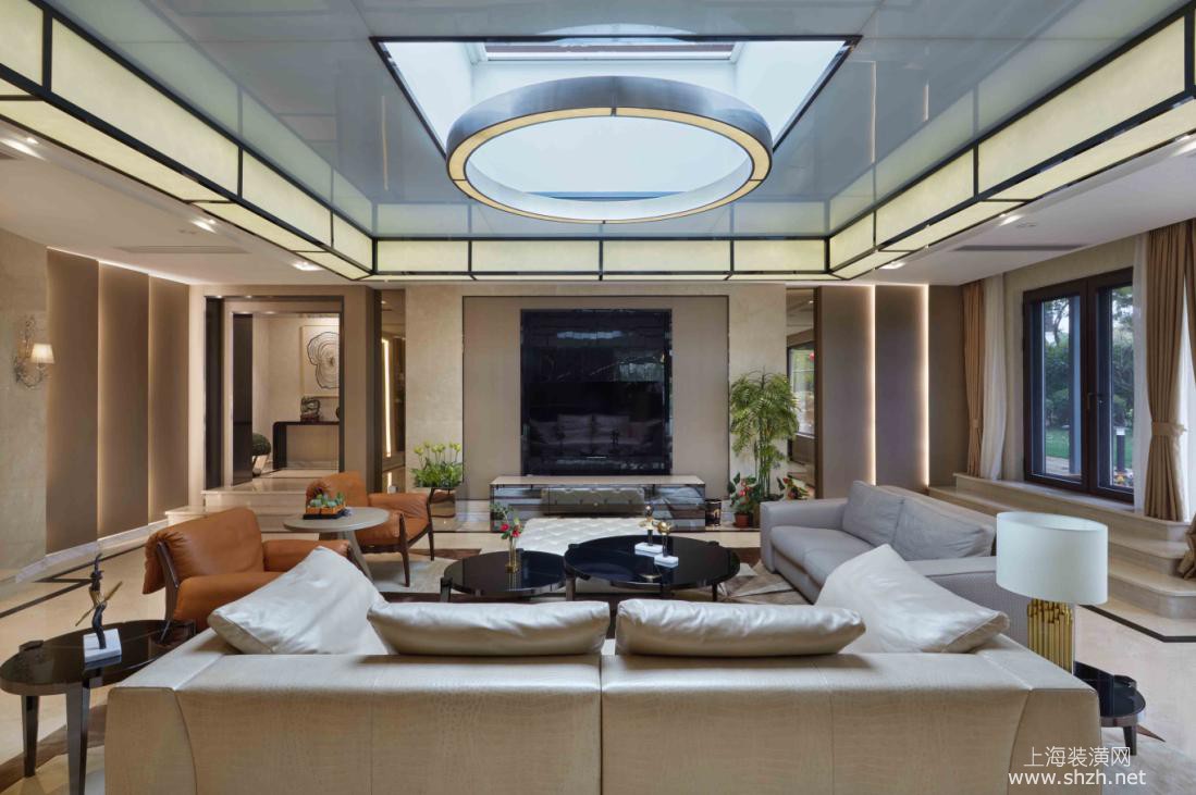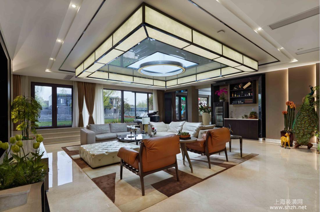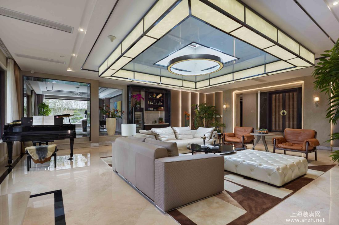 客厅 - 湖畔佳苑别墅项目装修新中式风格完工实景展示,上海腾龙别墅设计师孔继民作品,欢迎品鉴