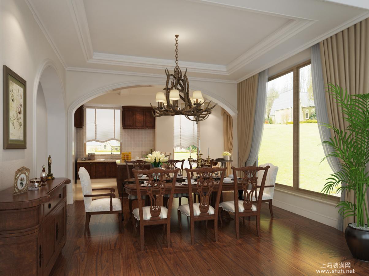 餐厅 - 绿洲千岛花园别墅项目装修美式风格设计,上海腾龙别墅设计师王琛作品,欢迎品鉴
