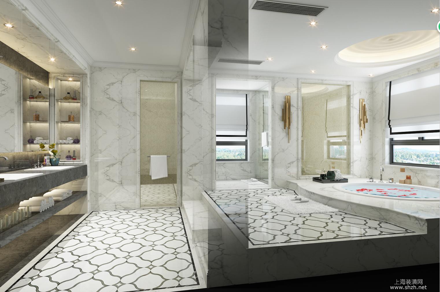 卫生间 - 西郊明园1200平独栋别墅项目装修现代风格设计,上海腾龙别墅设计师王琛作品,欢迎品鉴