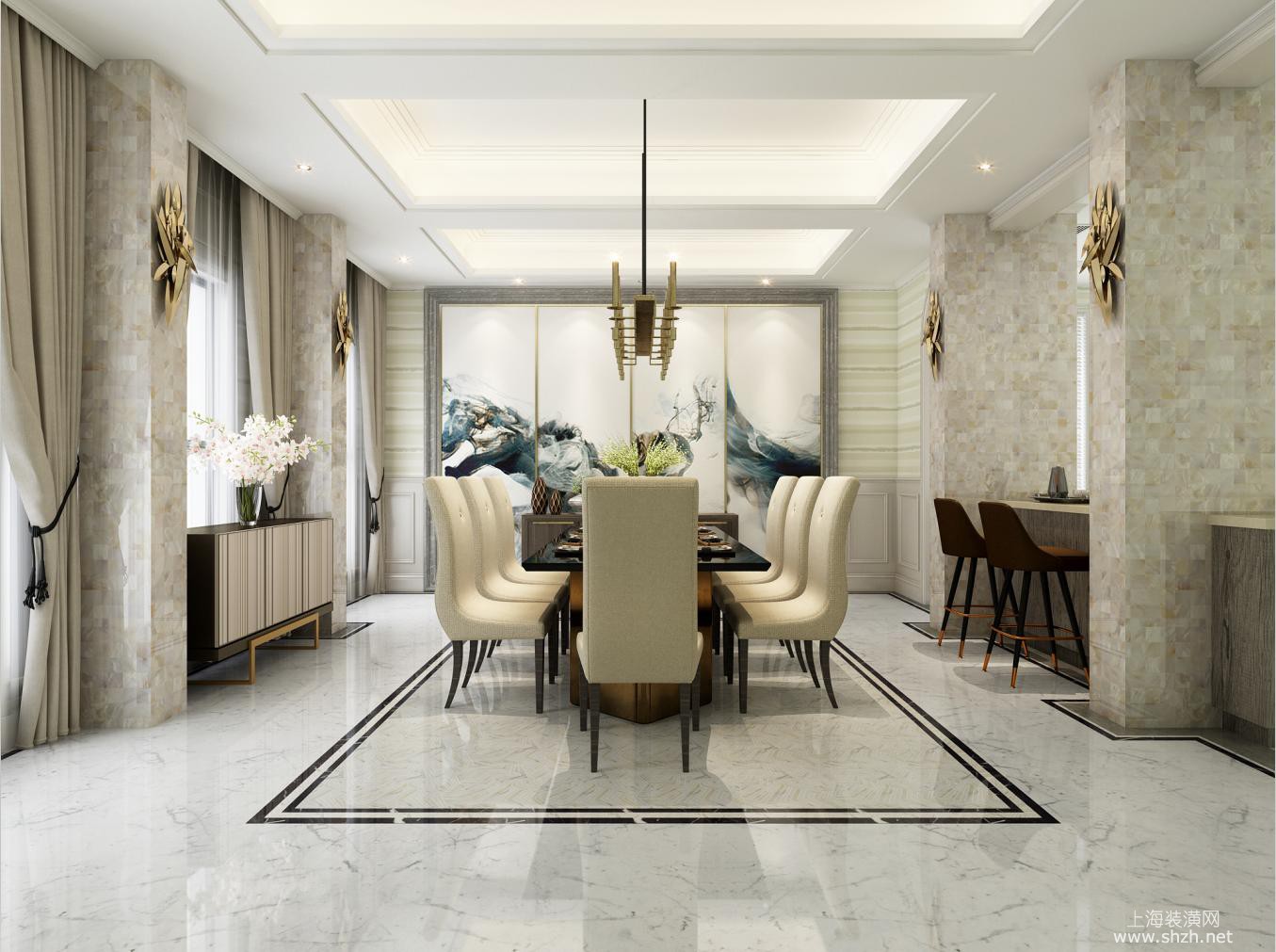 餐厅 - 西郊明园1200平独栋别墅项目装修现代风格设计,上海腾龙别墅设计师王琛作品,欢迎品鉴