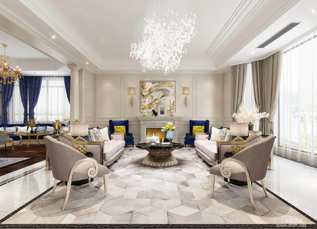 客厅 - 西郊明园1200平独栋别墅项目装修现代风格设计,上海腾龙别墅设计师王琛作品,欢迎品鉴