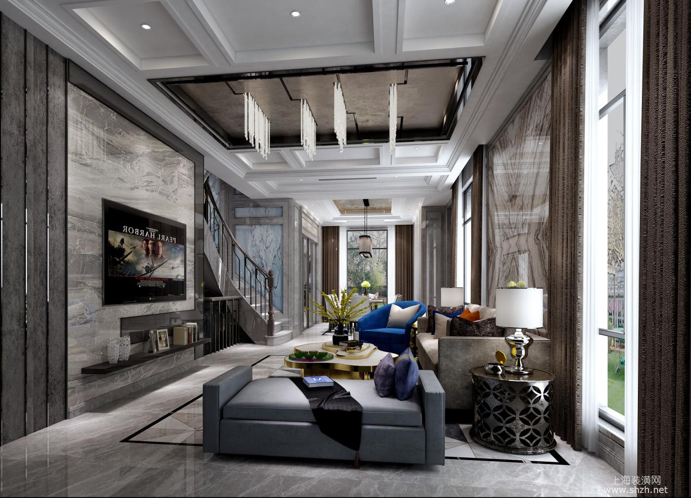 客厅 - 华贸东滩花园别墅项目装修新古典风格设计,上海腾龙别墅设计作品,欢迎品鉴