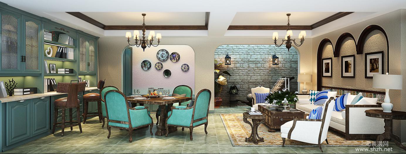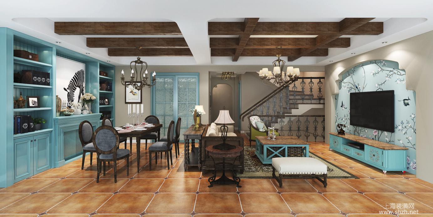 保利蔚蓝林语280平联排别墅项目装修设计-设计效果图