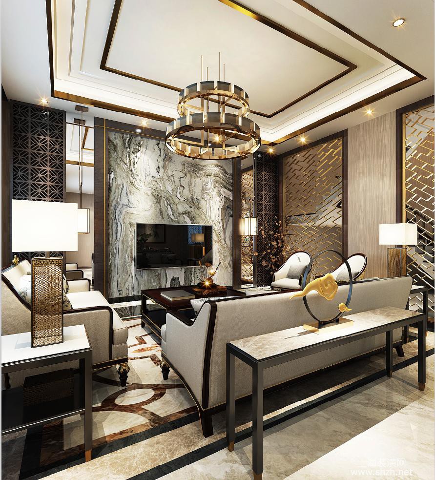 客厅 - 秋霞坊别墅项目装修新中式风格设计,上海腾龙别墅设计师周俊作品,欢迎品鉴