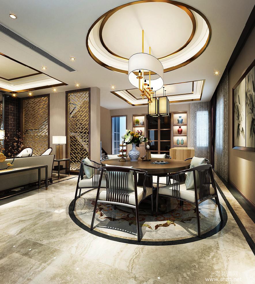 餐厅 - 秋霞坊别墅项目装修新中式风格设计,上海腾龙别墅设计师周俊作品,欢迎品鉴