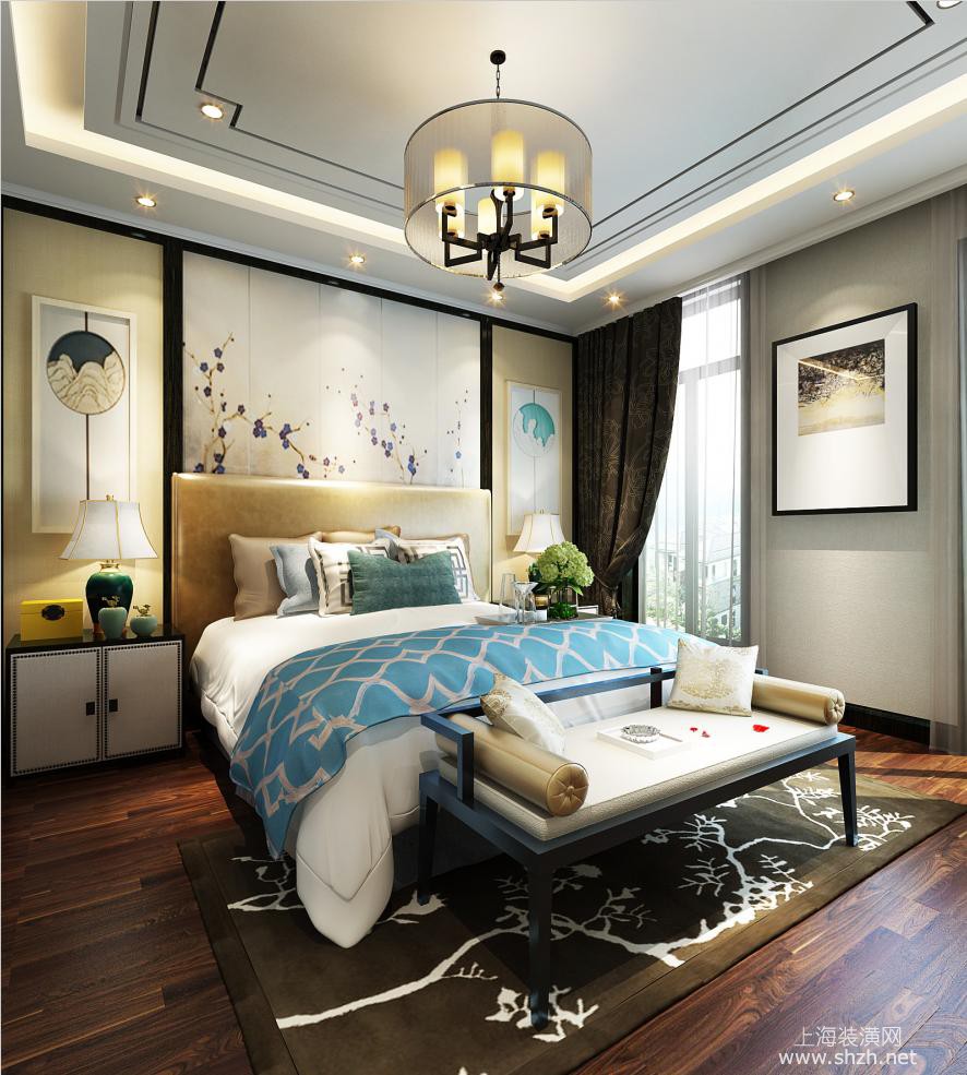 卧室 - 秋霞坊别墅项目装修新中式风格设计,上海腾龙别墅设计师周俊作品,欢迎品鉴