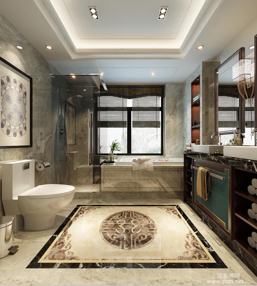 卫生间 - 秋霞坊别墅项目装修新中式风格设计,上海腾龙别墅设计师周俊作品,欢迎品鉴