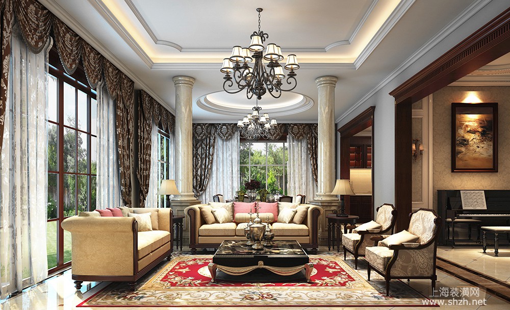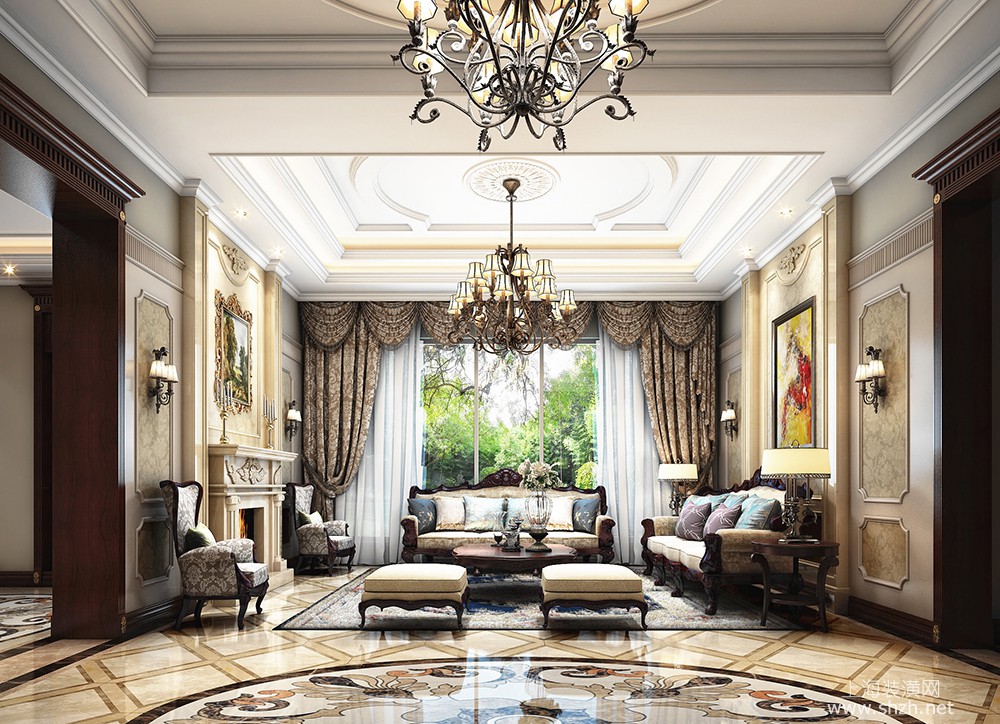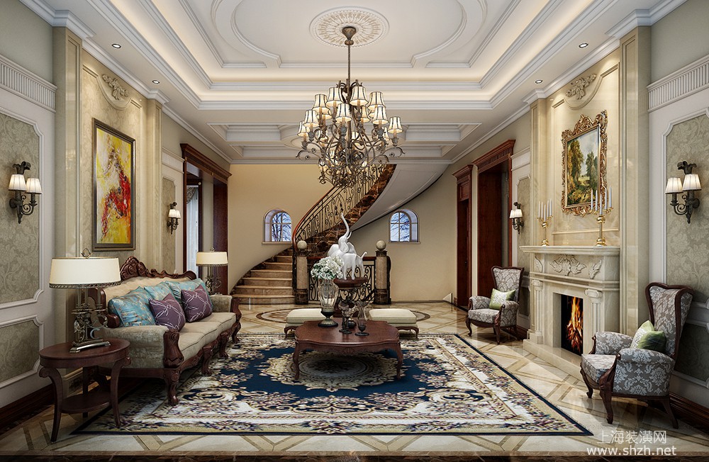 客厅 - 万科翡翠滨江别墅项目装修新古典欧式风格设计,上海腾龙别墅设计作品,欢迎品鉴