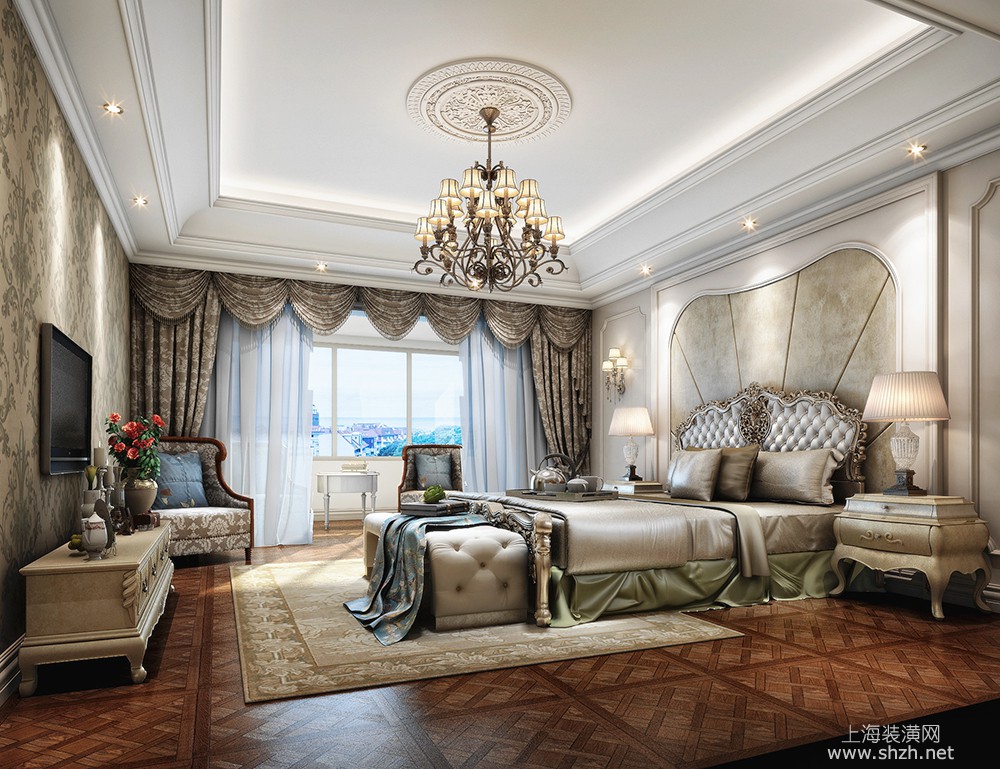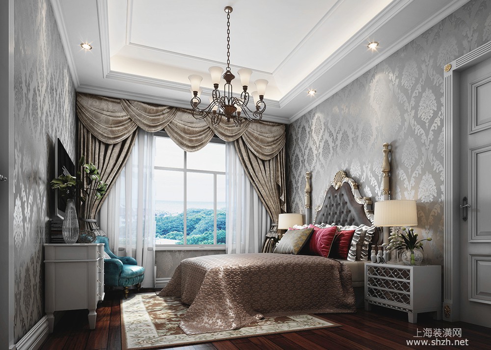 卧室 - 万科翡翠滨江别墅项目装修新古典欧式风格设计,上海腾龙别墅设计作品,欢迎品鉴