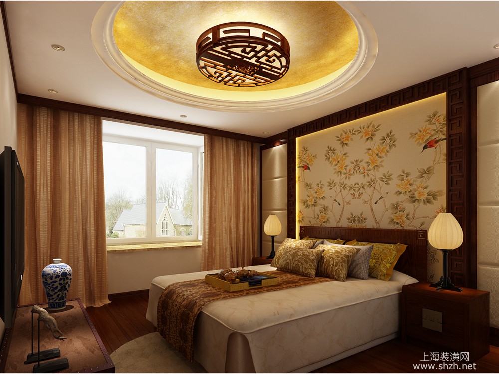 卧室 - 85嘉园别墅项目装修新中式风格设计,上海腾龙别墅设计师周俊作品,欢迎品鉴