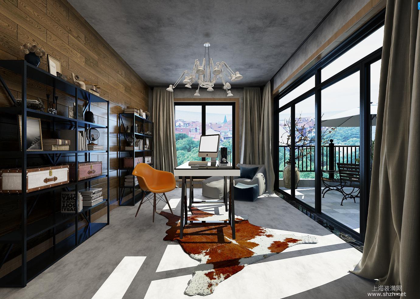 书房 - 中城国际别墅项目装修后现代风格设计,上海腾龙别墅设计师周俊作品,欢迎品鉴