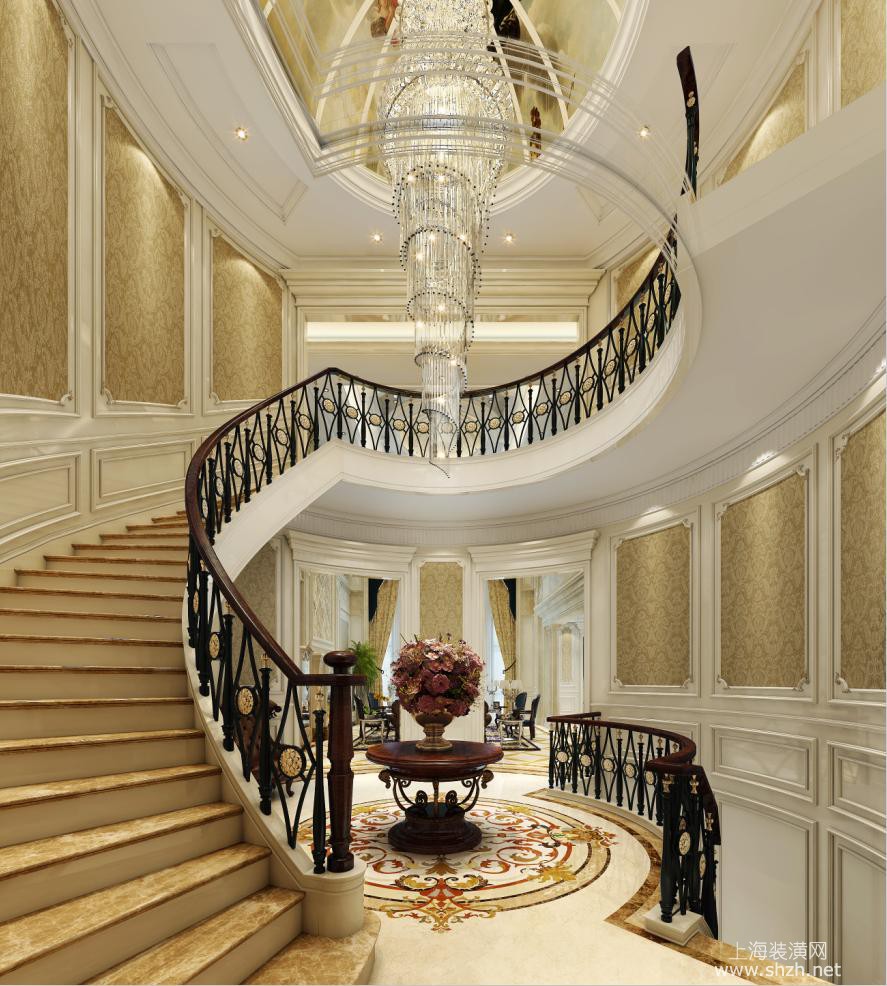 楼梯 - 昆山,昆玉九里别墅项目装修新古典风格设计,上海腾龙别墅设计师刁镇英作品,欢迎品鉴