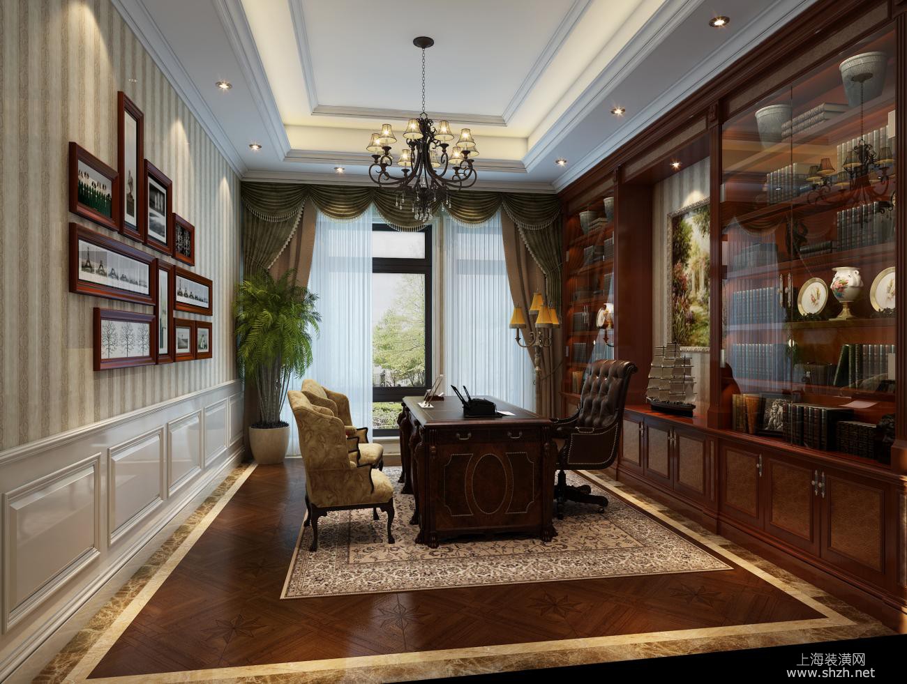 书房 - 昆山,昆玉九里别墅项目装修新古典风格设计,上海腾龙别墅设计师刁镇英作品,欢迎品鉴