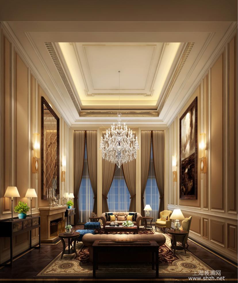 客厅 - 楼盘:绿洲比华利 户型:780㎡独栋别墅 设计风格:新古典 设计师:章伟 案例介绍:本案充分体现了新古典主义风格,热衷于收藏艺术品和古董的业主对于新居的风格需求十分明确。象牙白香槟金大理石装饰,蓝色与卡其色通过用亮白色与罗曼棕的搭配彰显经典,设计师将现代生活与艺术完美结合,缔造出此套气派十足的优雅大宅。