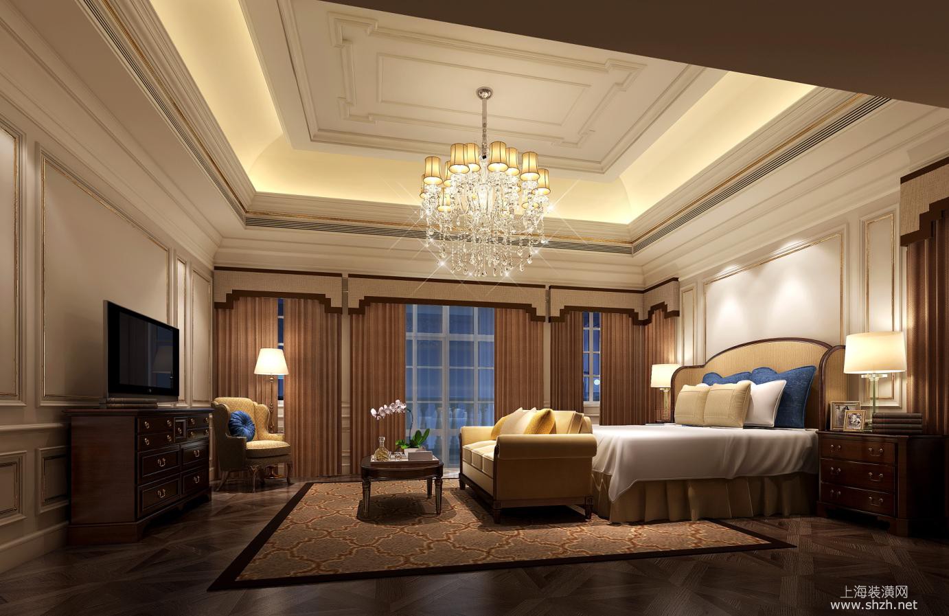 卧室 - 楼盘:绿洲比华利 户型:780㎡独栋别墅 设计风格:新古典 设计师:章伟 案例介绍:本案充分体现了新古典主义风格,热衷于收藏艺术品和古董的业主对于新居的风格需求十分明确。象牙白香槟金大理石装饰,蓝色与卡其色通过用亮白色与罗曼棕的搭配彰显经典,设计师将现代生活与艺术完美结合,缔造出此套气派十足的优雅大宅。