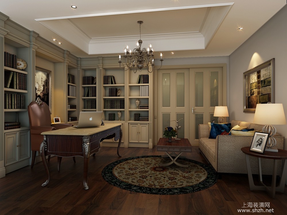 书房 - 两河流域别墅项目装修欧美风格设计,上海腾龙别墅设计作品,欢迎品鉴