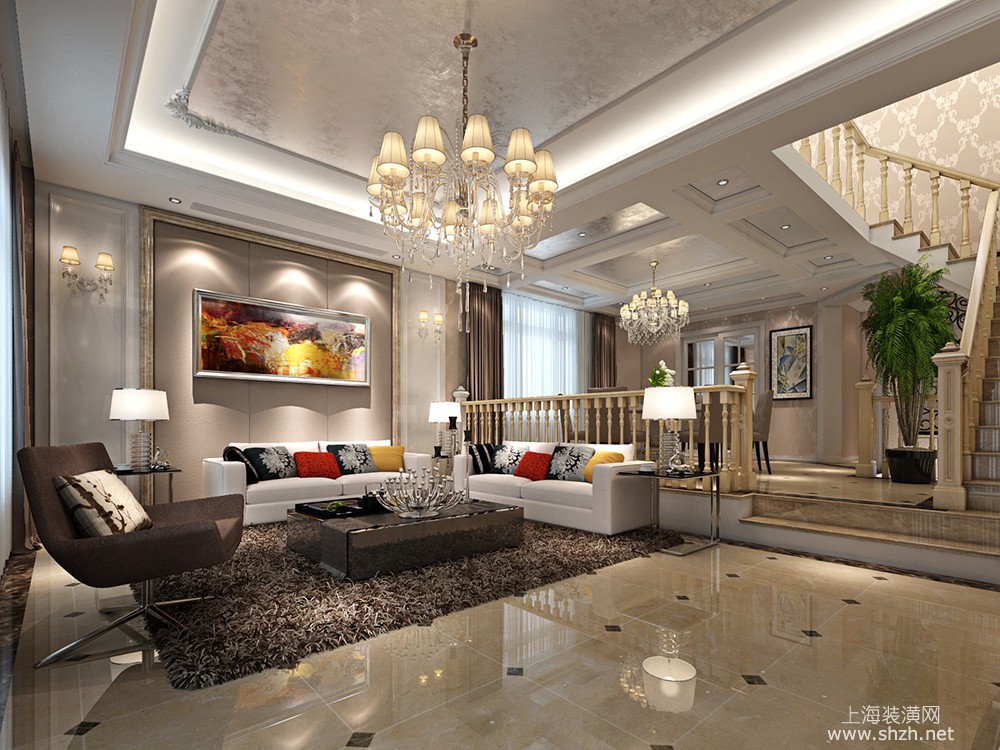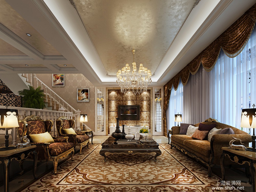 客厅 - 晶苑四季御庭别墅项目装修新古典欧式风格设计,上海腾龙别墅设计作品,欢迎品鉴