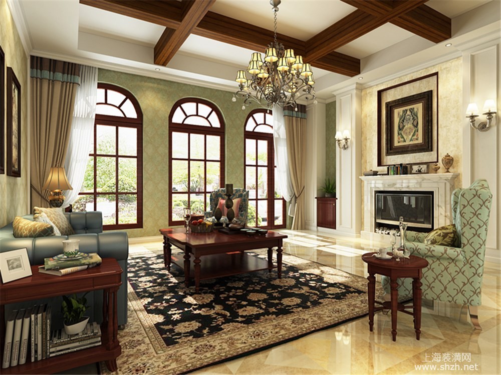 客厅 - 龙湖好望山别墅项目装修欧美风格设计,上海腾龙别墅设计作品,欢迎品鉴