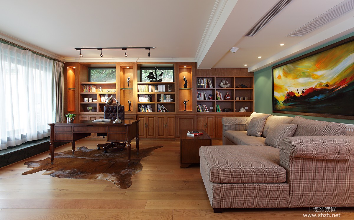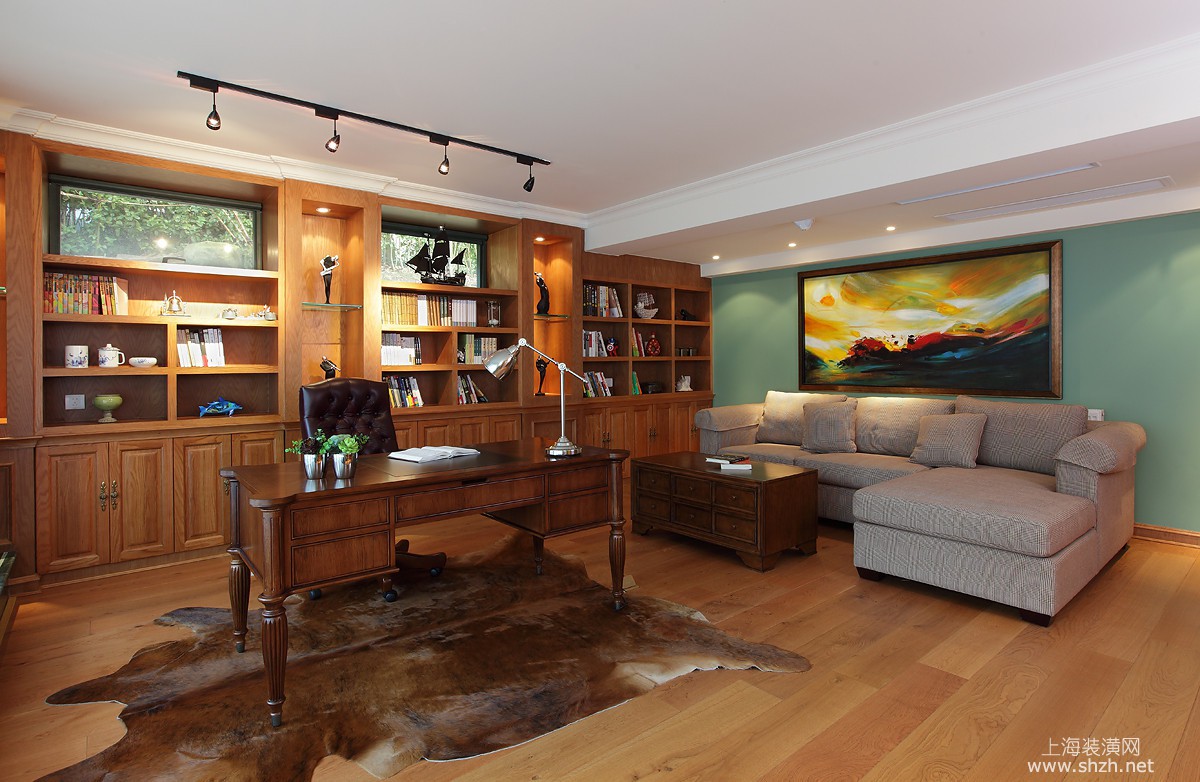 书房 - 绿地海域观园别墅装修美式风格设计,上海腾龙别墅设计作品,欢迎品鉴
