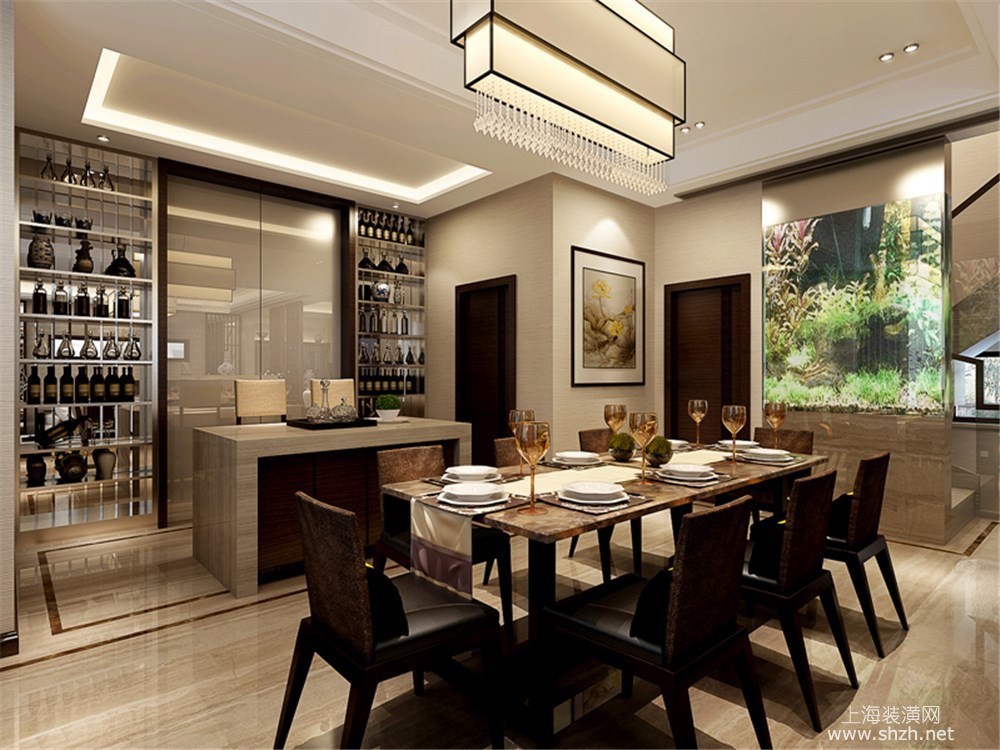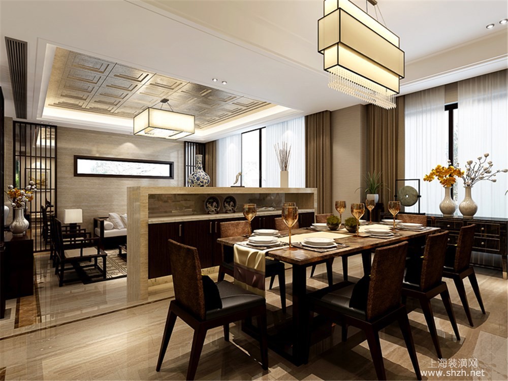 餐厅 - 绿地海域观园别墅装修新中式风格设计,上海腾龙别墅设计作品,欢迎品鉴