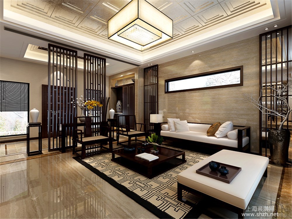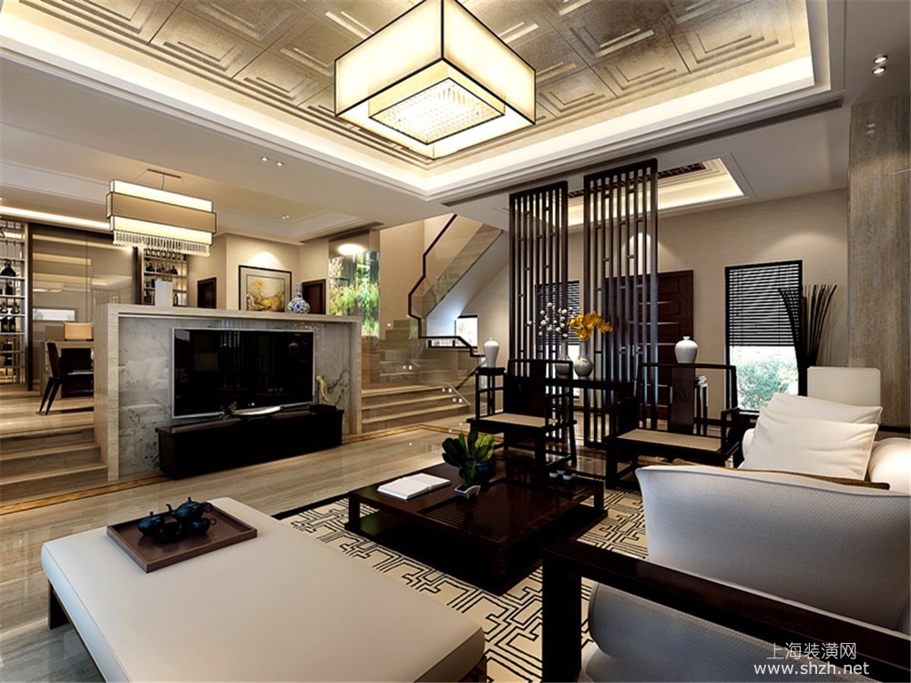 客厅 - 绿地海域观园别墅装修新中式风格设计,上海腾龙别墅设计作品,欢迎品鉴