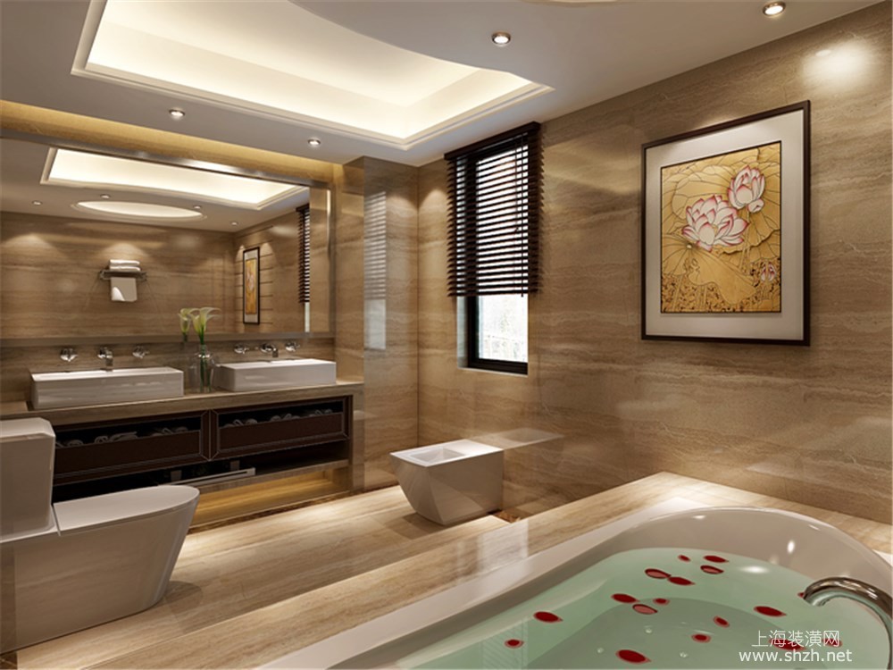 卫生间 - 绿地海域观园别墅装修新中式风格设计,上海腾龙别墅设计作品,欢迎品鉴