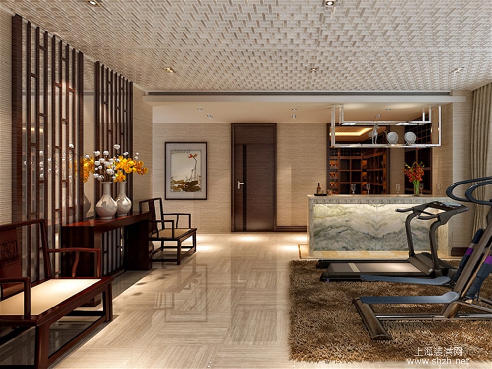 休闲区 - 绿地海域观园别墅装修新中式风格设计,上海腾龙别墅设计作品,欢迎品鉴