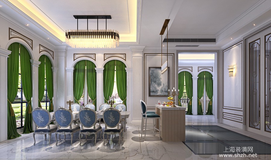 餐厅 - 月湖山庄别墅样板房项目装修欧式古典风格设计,上海腾龙别墅设计师李旭彤作品,欢迎品鉴