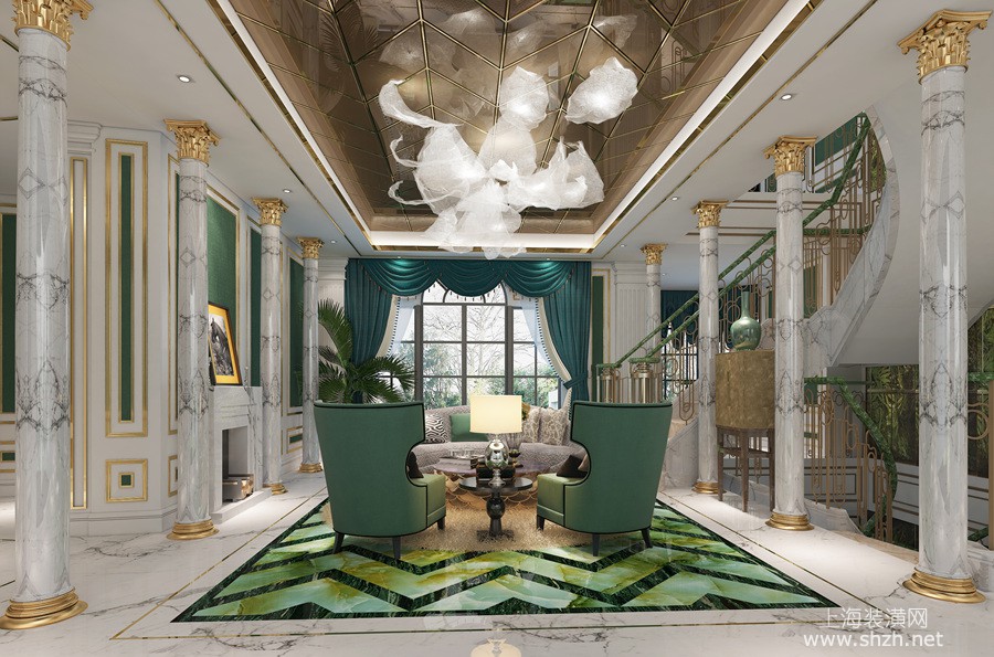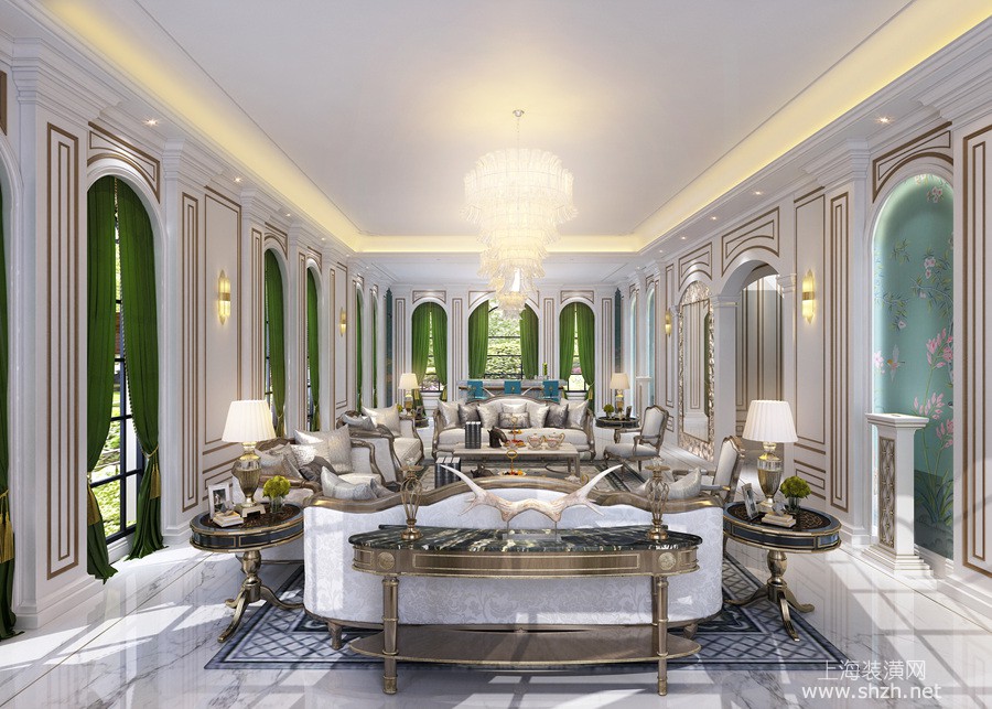 客厅 - 月湖山庄别墅样板房项目装修欧式古典风格设计,上海腾龙别墅设计师李旭彤作品,欢迎品鉴