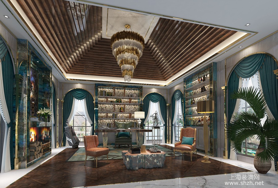 书房 - 月湖山庄别墅样板房项目装修欧式古典风格设计,上海腾龙别墅设计师李旭彤作品,欢迎品鉴
