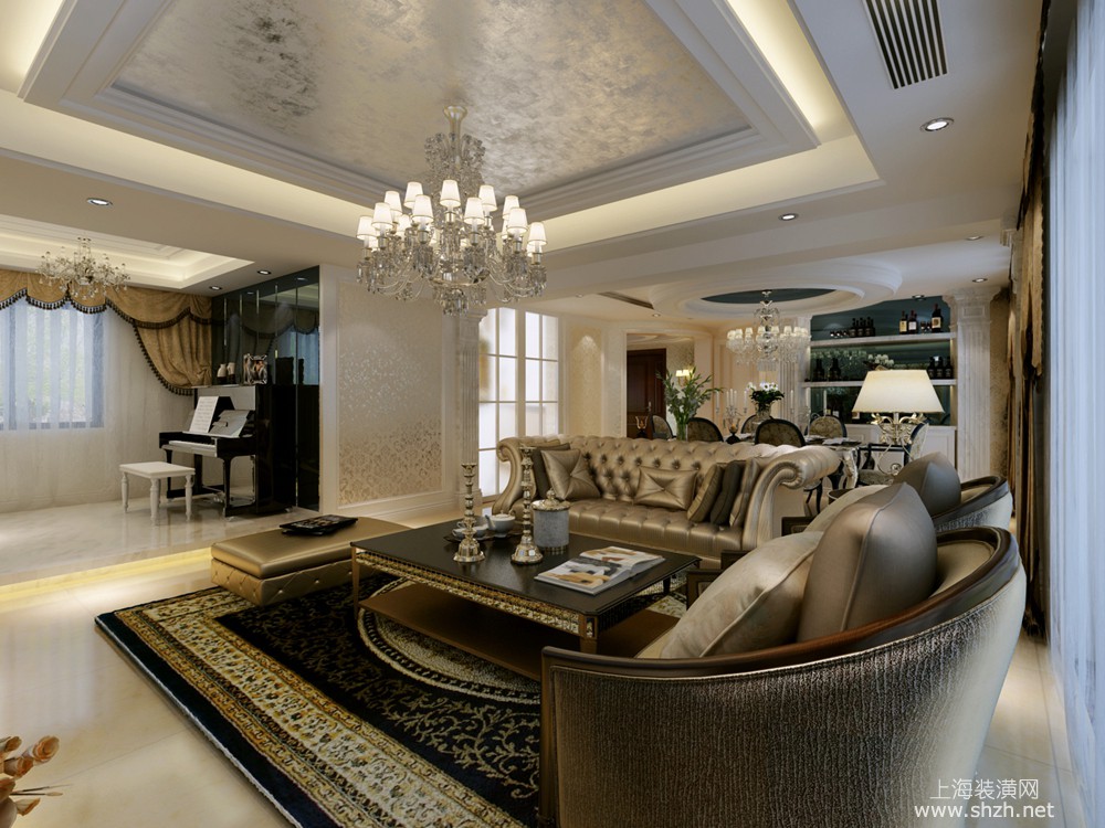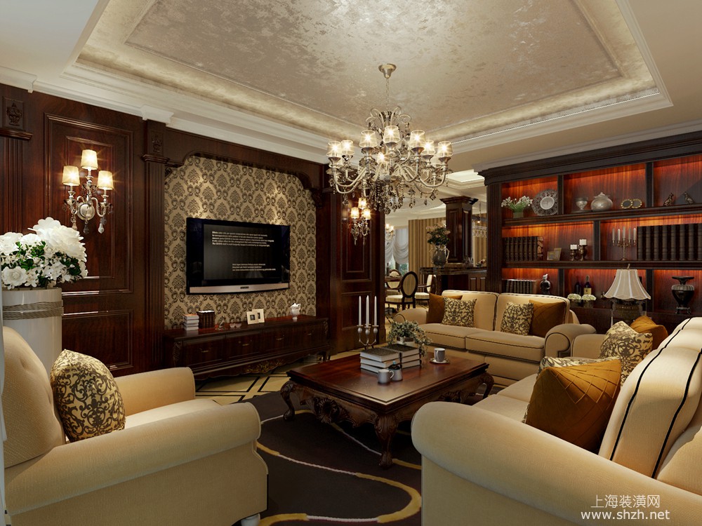 客厅 - 东海御庭别墅项目装修欧美风格设计,上海腾龙别墅设计作品,欢迎品鉴