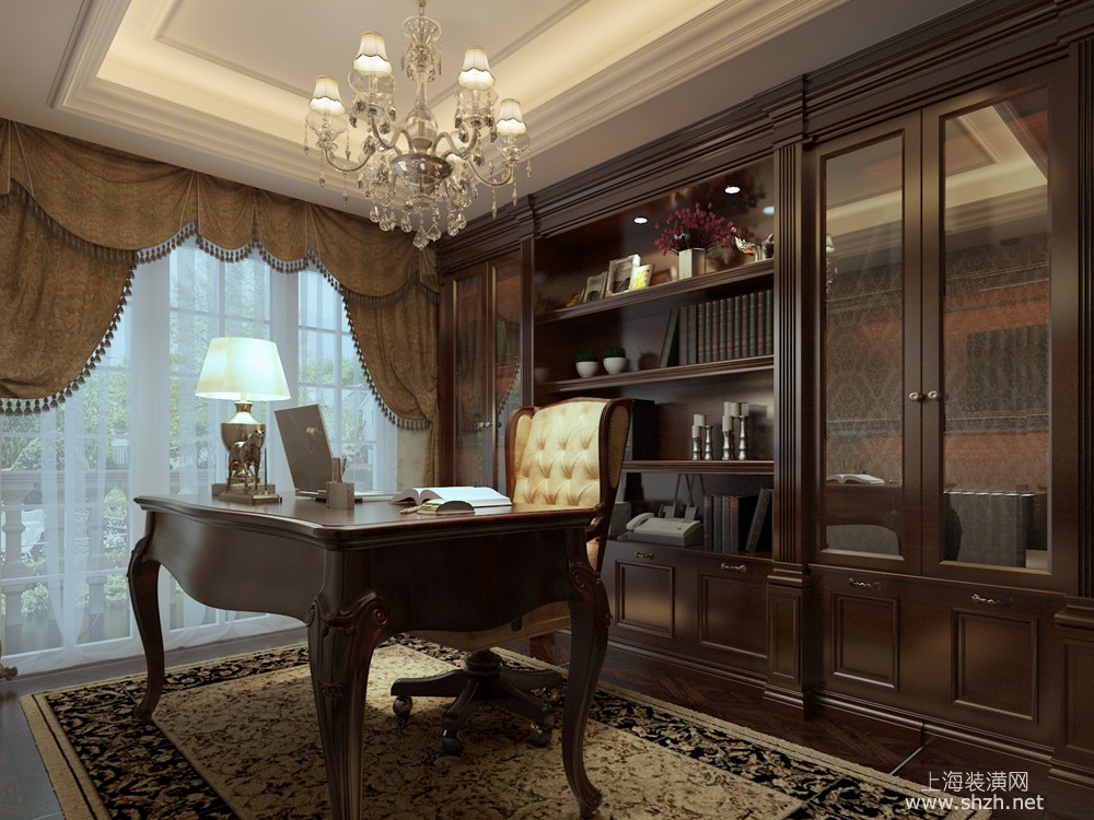书房 - 东海御庭别墅项目装修欧美风格设计,上海腾龙别墅设计作品,欢迎品鉴