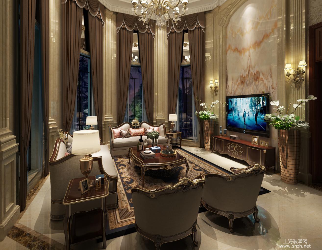 客厅 - 香水湾别墅项目装修设计案例展示,上海腾龙别墅设计师孔继民作品,欢迎品鉴